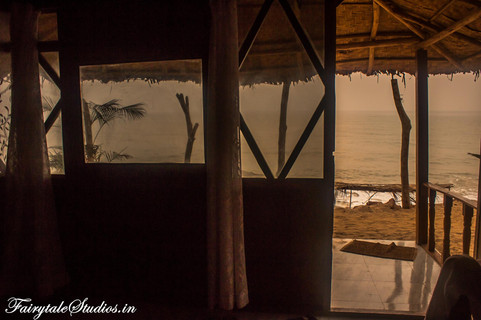 The huts of our resort are rebuilt from scratch every year after monsoon; the palm walls of the room woven together to provide natural ventilation and the whole setting is spacious and delightfully secluded. Each hut has a cushy bed and an attached open from the top bath. We had paid for a sea view room and had a balcony that opened right on the beach. We could just sit outside our room and keep gazing the endless ocean forever. We had a freshwater lagoon right next to the resort which was separated from the sea by a small strip of sand. The beach is completely cut off from the mainland and doesn’t even support any mobile signals which altogether gave us an exclusive and private feel. We experienced two contrasting water bodies – the steeply sloped beach with bit rough and strong waves that pull you back in the sea and the lagoon which is extremely calm and inviting. Serenity or even heaven is an understatement to describe this piece of setting. We took a swim in the sea and later freshened up with swimming in the freshwater lagoon to get rid of the itchy dry sand and salty water. The tranquility in the atmosphere made us so lazy now that we carried our novels and retired on the sunbeds reading. Without a care in the world and forgetting the existence of time we fell asleep on the beach.